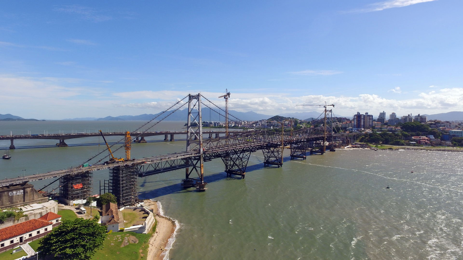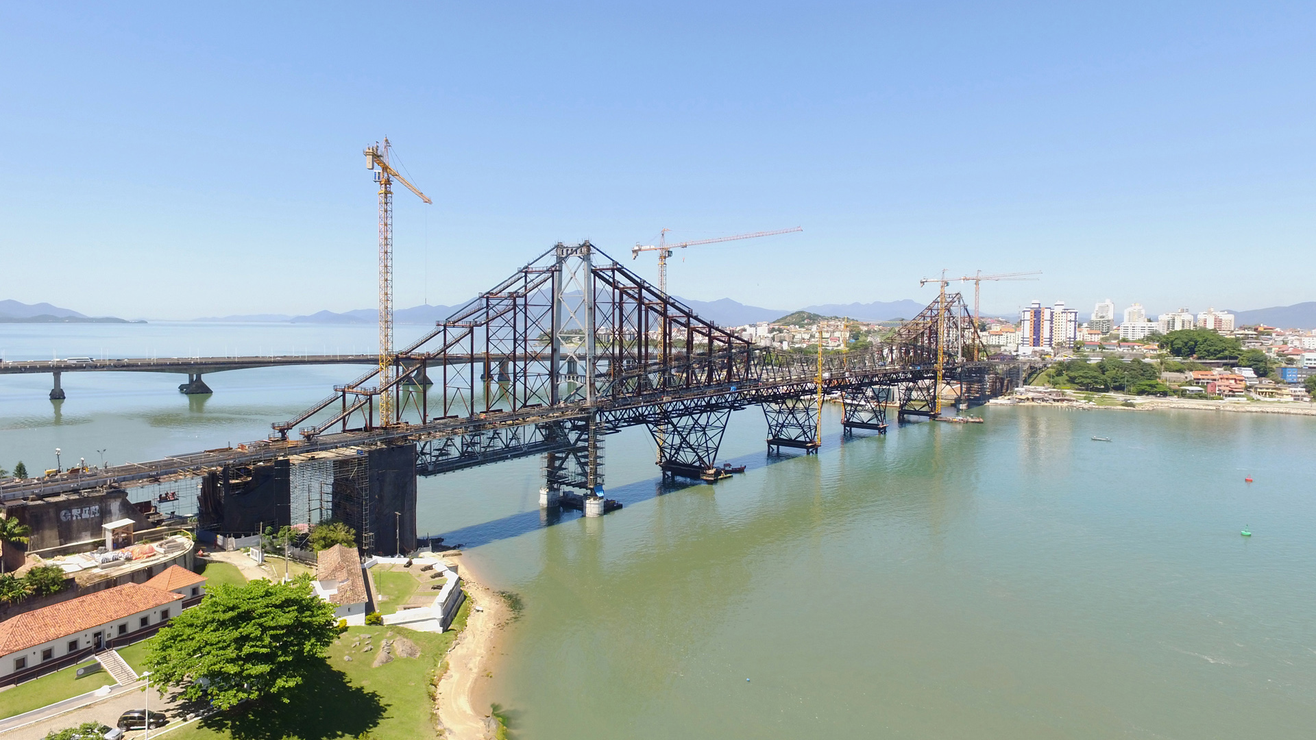 Reabilitação integral da Ponte Hercílio Luz, incluindo a substituição de aparelhos de apoio nas torres principais, reforço e recuperação de fundações, reabilitação da estrutura metálica, substituição de barras de olhal, celas e pendurais, incluindo trabalhos de transferência de carga. Aplicação de novos tabuleiros de circulação automóvel, pedonal e de velocípedes.